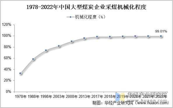 伴跟着煤炭行业的稳健成长,我国煤炭配备制制业加速布局调整和转型升级,财产规模持续扩大,财产集中度较着提拔,自从立异能力显著加强,先辈高端制制取得新进展,财产根本逐步夯实,产质量量显著提高。据数据显示,我国大型煤炭企业采煤机械化程度由1978年的32。5%提高到2022年的99。01%,已实现高度机械化。跟着行业集中度提拔及煤矿规模的扩大,我国的煤矿开采履历了机械化到从动化的成长,当前正处于智能化起步阶段。