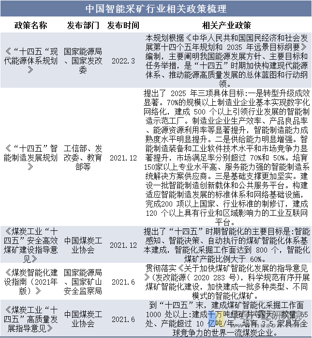 2025年中国智能采煤行业成长过程、相关政策梳理